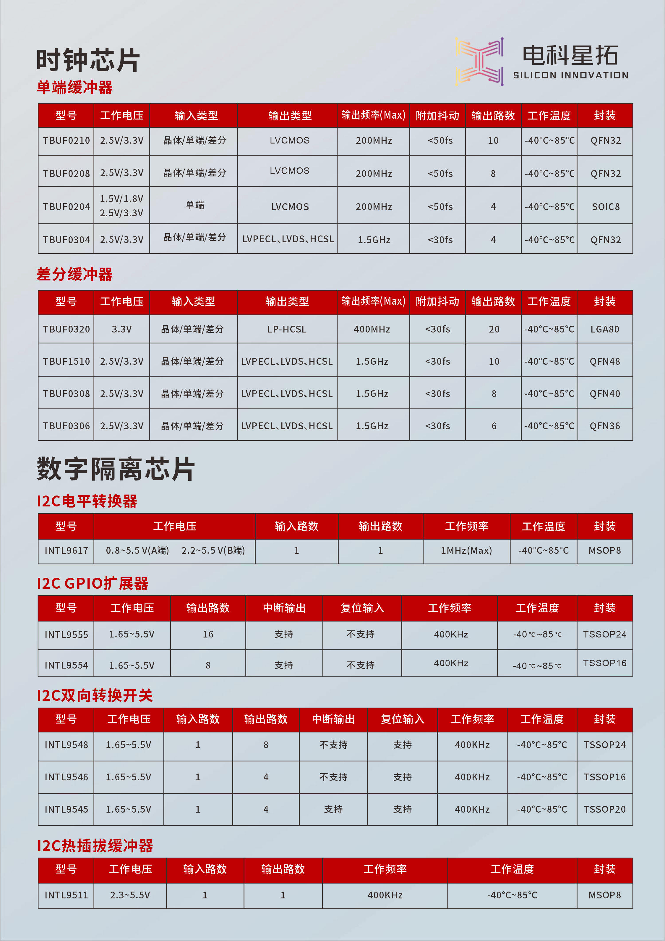 TBUF0304 2.5V/3.3V crystal/single-ended/differential LVPECL、LVDS、HCSL 1.5GHz <30fs 4 -40℃~85℃ QFN32